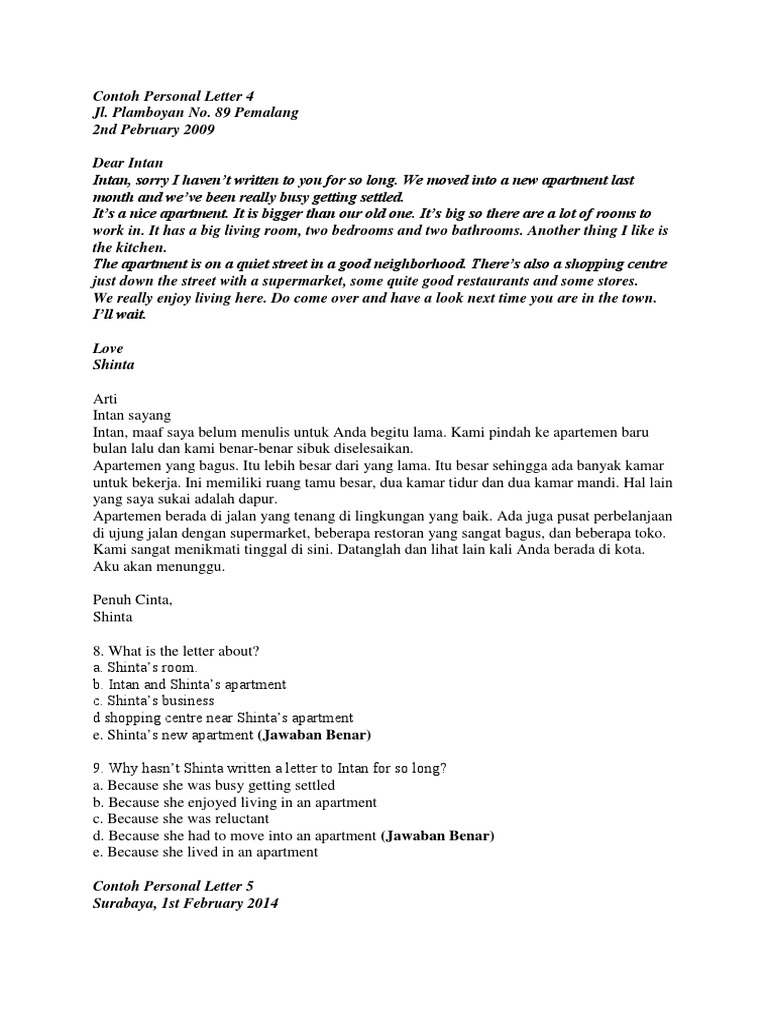 36 Soal Personal Letter Dan Jawabannya Beserta Arti Docx
